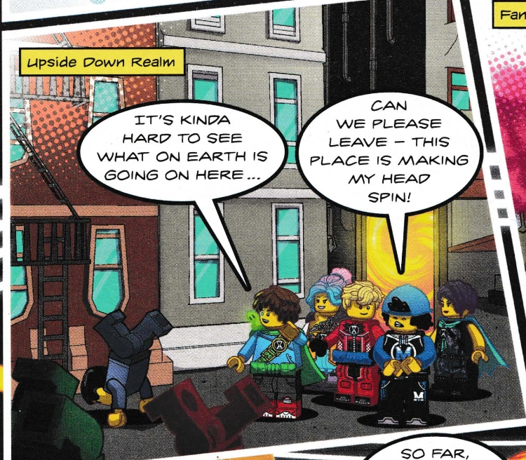 Mateo, Izzie, Logan, Cooper, and Zoey visited the Upside Down Realm while they were looking for grimspawns, and watched as a dreamer walked upside down.